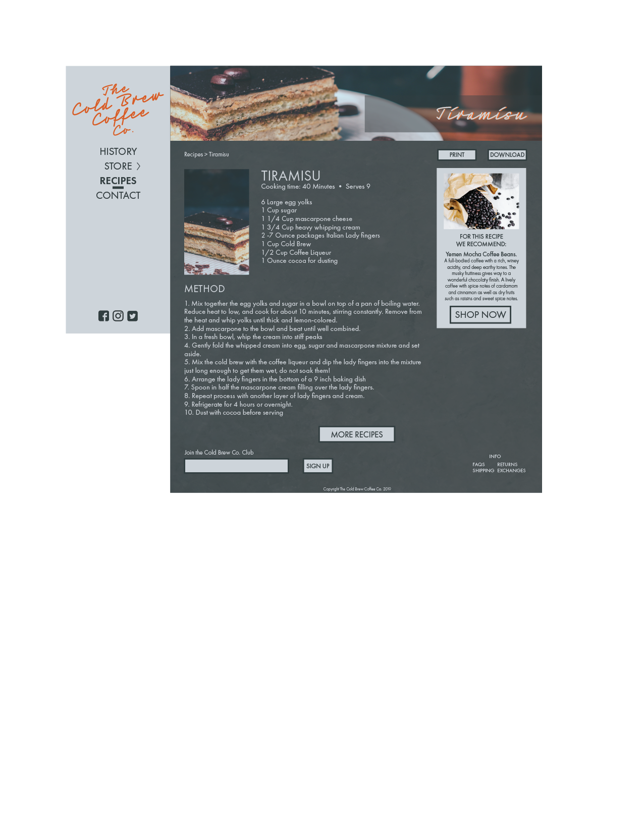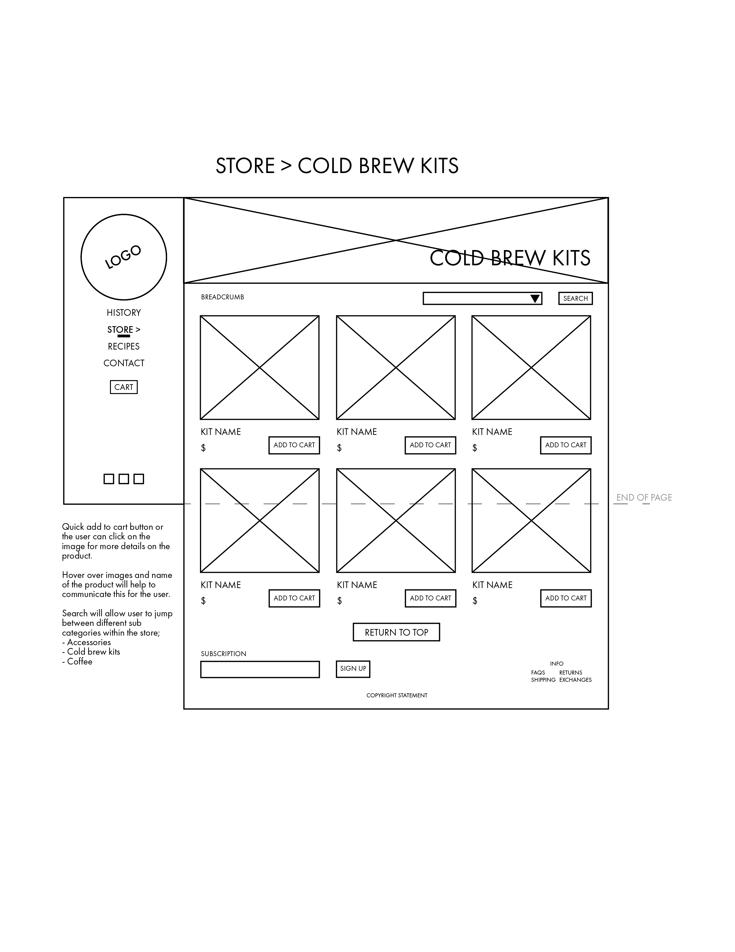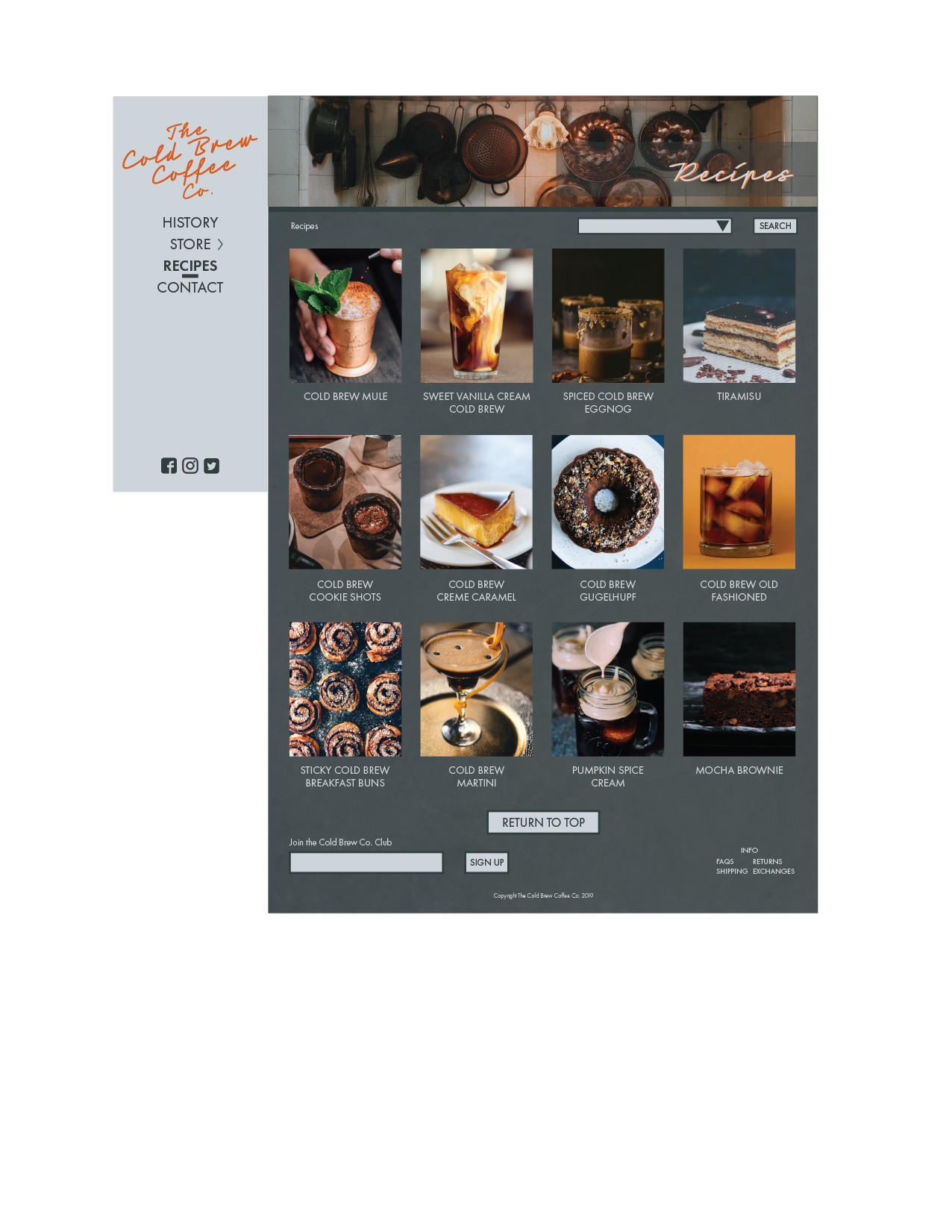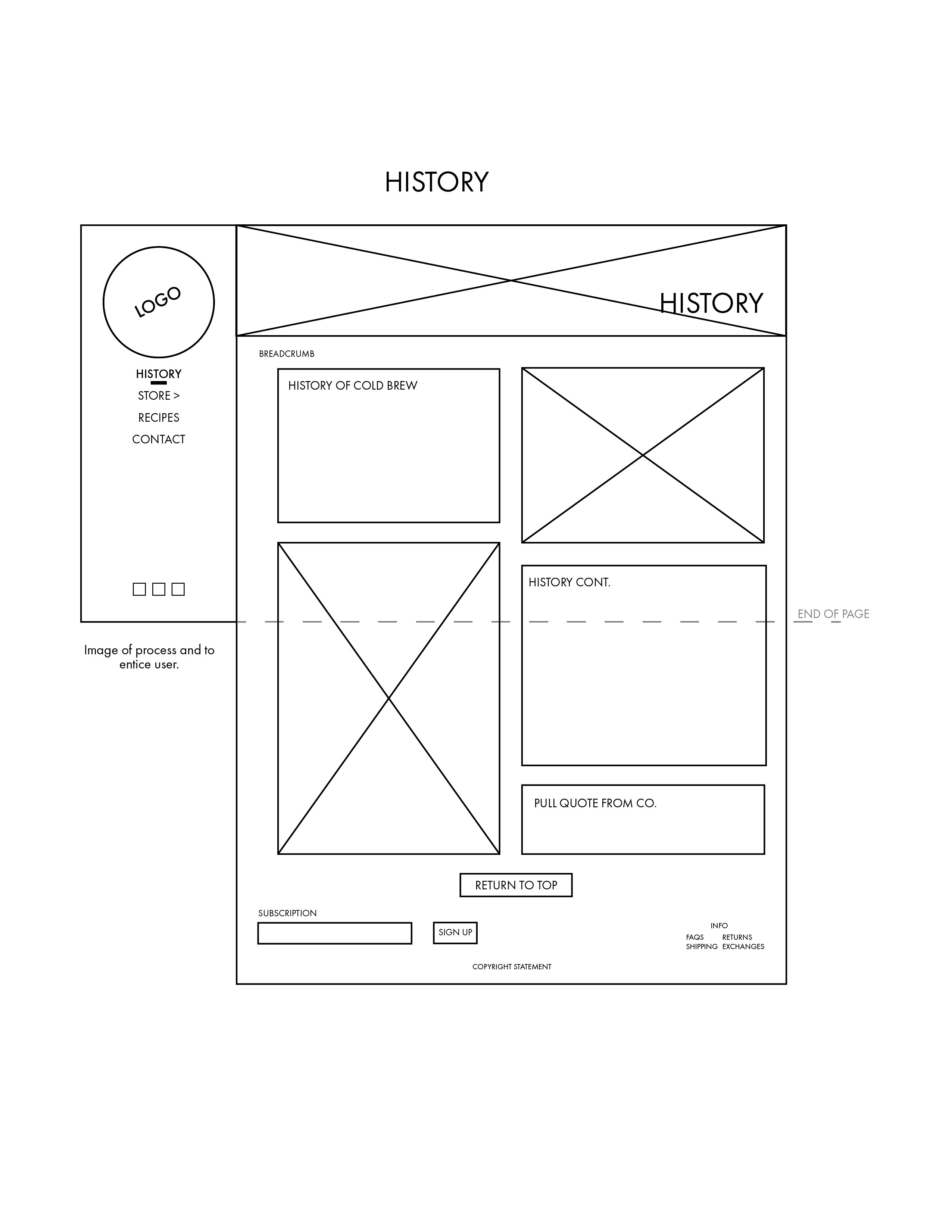 The purpose of this project was to create a website for a fictional Cold Brew Coffee Company. The site aims to serve as an online store for the company to sell Cold Brew kits for the audience to brew coffee at home, a place for users to learn more about the history of cold brew and get to know the company.