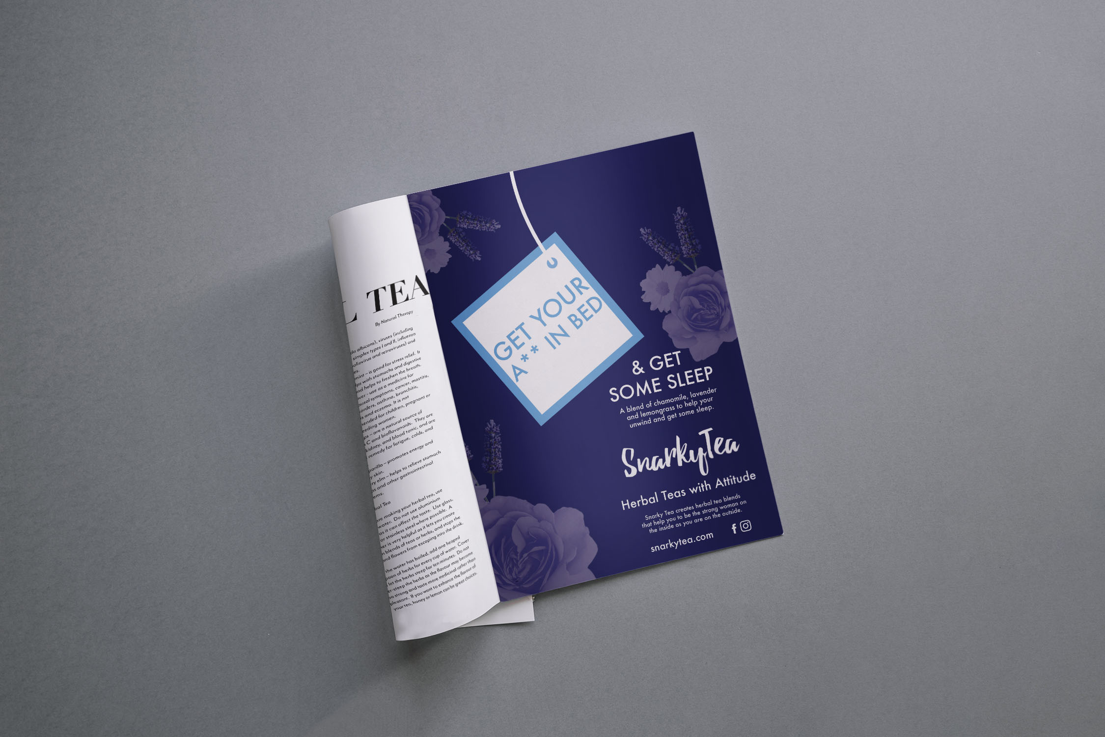This campaign aims to advertise Snarky Tea in a fun way that represents the brand and catches the attention of the intended female audience (25-45 years old). Each tea is made with a specific intended purpose to help women through their busy days by giving them energy, providing calm, or making them sleep easier. The inspiration behind the work echoes the company’s ideas of tea made for women by women. The brand was created to empathise with the audience by understanding what they want and giving them what they need, precisely as the ads intend to communicate. The brand already created the names of the tea’s; it was up to me to create fun, engaging and empathetic taglines, call to actions and body copy that demonstrate and reflect the target audience that Snarky Tea understands them and has their back.